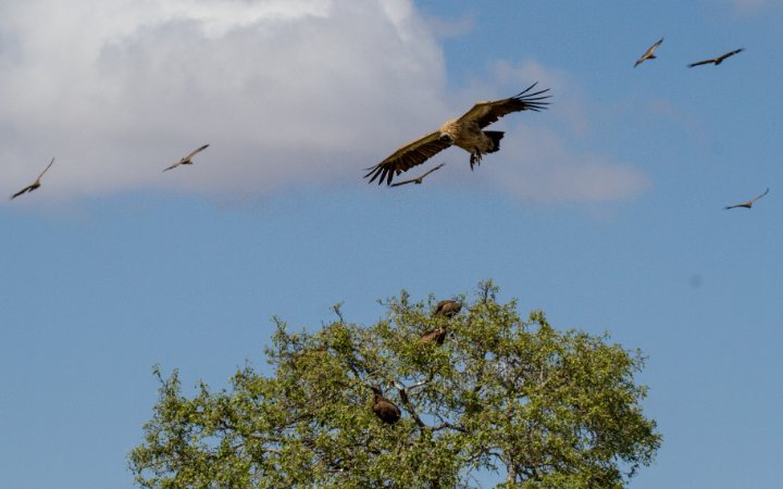 Dead elephant with vultures